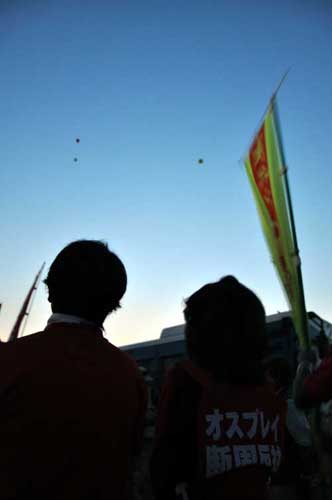 ●日が落ちてからも、空に浮かぶ風船。 写真・文章ともに八木隆次。 このページに限り、写真の使用に当たっては、八木隆次のクレジットを記載してください。 |