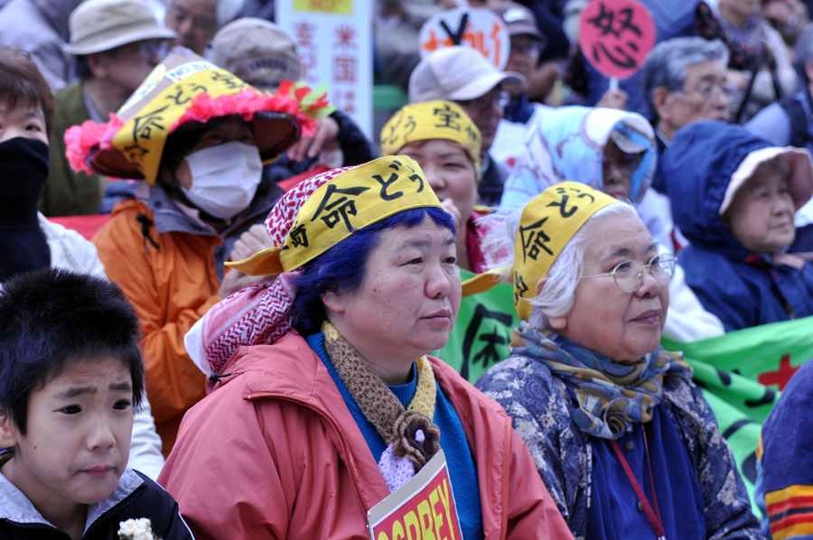 | ●会場には、3000人の人々が集まりました。 ●「さらばんじぬの会」の皆さん。65歳以上の熟年者を中心に結成されています。野篙・大山両ゲート前で、連日の抗議行動を行っています。検索すると「さらばんじ」とは、沖縄の言葉で「人生はいまが盛り」というような意味のようです。 ●東村の高江では、12月に入ってからも連日のように、ヘリパット建設の工事が進められています。 ●伊江島の皆さん。 ●普天間爆音訴訟団の皆さん。 ●平和フォーラム加盟組織の皆さん。