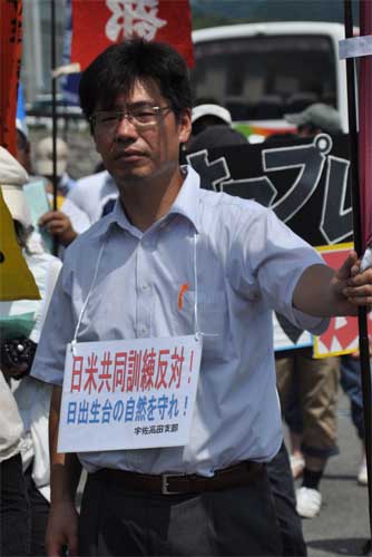 日出生台対策会議の内田淳一議長が「日米共同訓練の恒常化を許すことはできない。また最も危険といわれる新型輸送機・オスプレイの沖縄配備を認めることはできない」と訴えました。