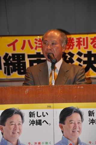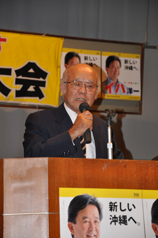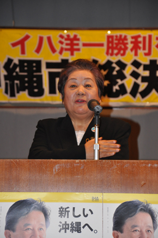 私は選挙になると、燃えてきます。皆が燃えに燃えて、伊波洋一県知事を誕生させましょう。若い政治家の伊波洋一さんに沖縄のために、働いてもらいましょう。