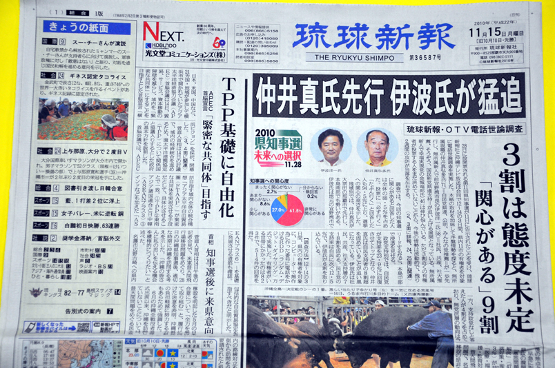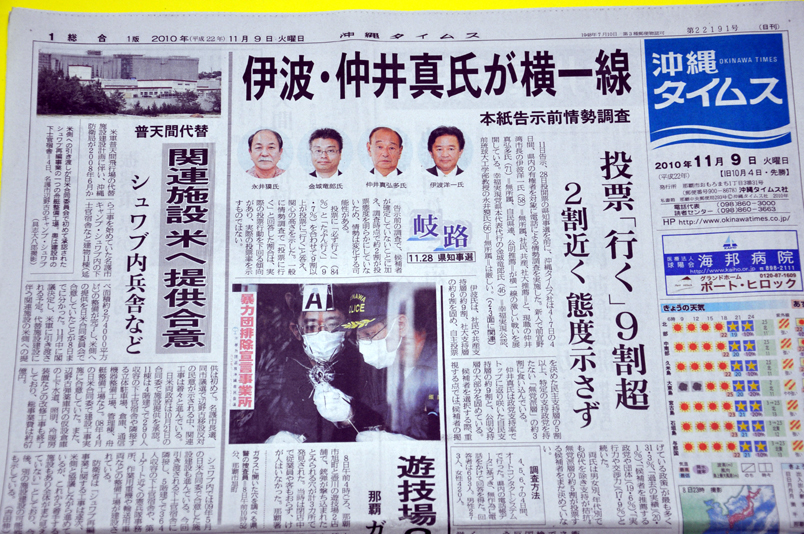○「沖縄タイムス」〈伊波・仲井真氏が横一線 県知事選〉http://www.okinawatimes.co.jp/article/2010-11-09_11843/