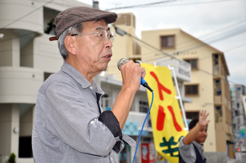 東京平和運動センターの事務局長であり、厚木基地爆音防止期成同盟の会員でもある関久さんは、東京や神奈川の米軍基地の現状を訴え、また全国の反基地運動が沖縄知事選に注目していると語りました。