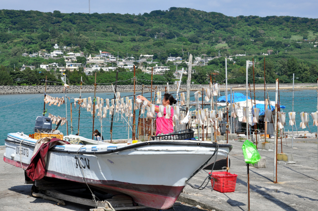 ●昼食休憩をとった南城市の漁港。沖縄平和運動センターの山城さんによれば「これが沖縄の原風景」とのことです。