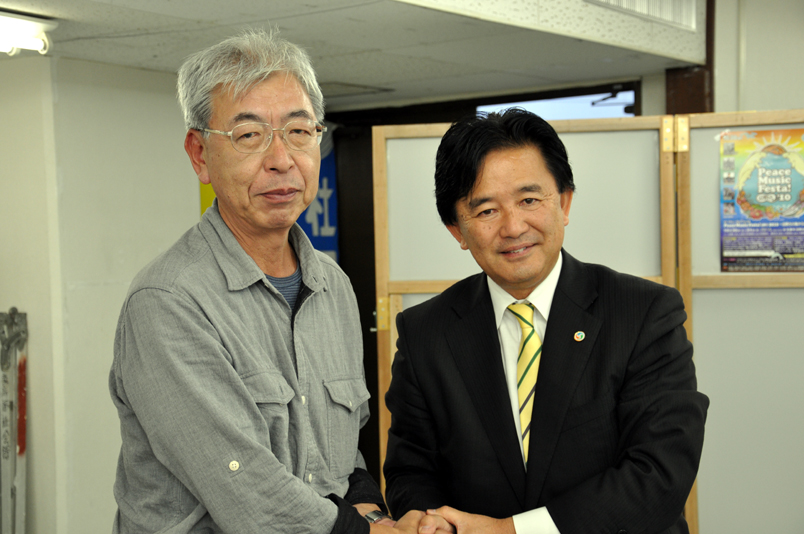 ●那覇市の総合後援会事務所に立ち寄ると、取材を受けるために伊波洋一さんがいらっしゃいました。