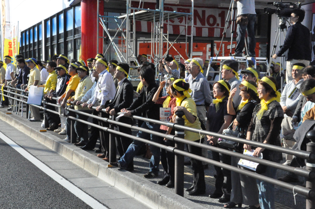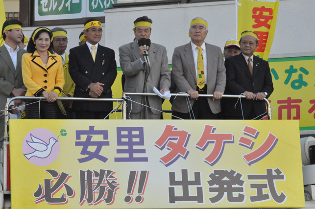 500人の支持者が参加し安里タケシ必勝!!出発式