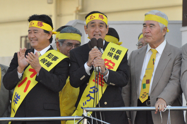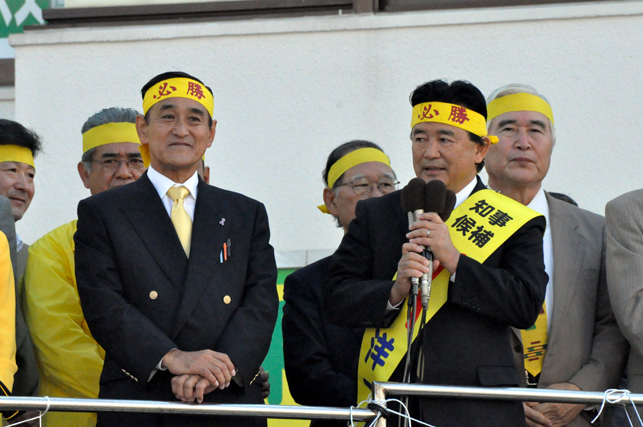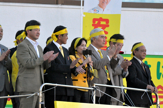 ●県知事選候補者のイハ洋一さんも駆けつけました。