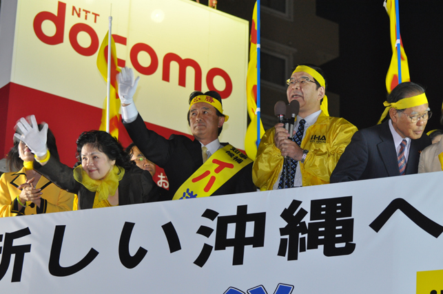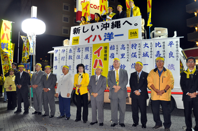 もう私たちは、自らの力で、沖縄の自立をめざしてまいりましょう。基地も経済も全ての課題を、イハ洋一さん託してまいりましょう。何としても県知事選挙に勝ち抜きましょう。