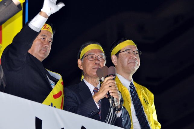 私たちは戦後65年、負担を強いられてきました。今回が最後のチャンスです。このチャンスを逃がせば、次は無いかもしれません。その思いで明日の県知事選では、イハ洋一県知事誕生のために、最後までがんばりましょう。