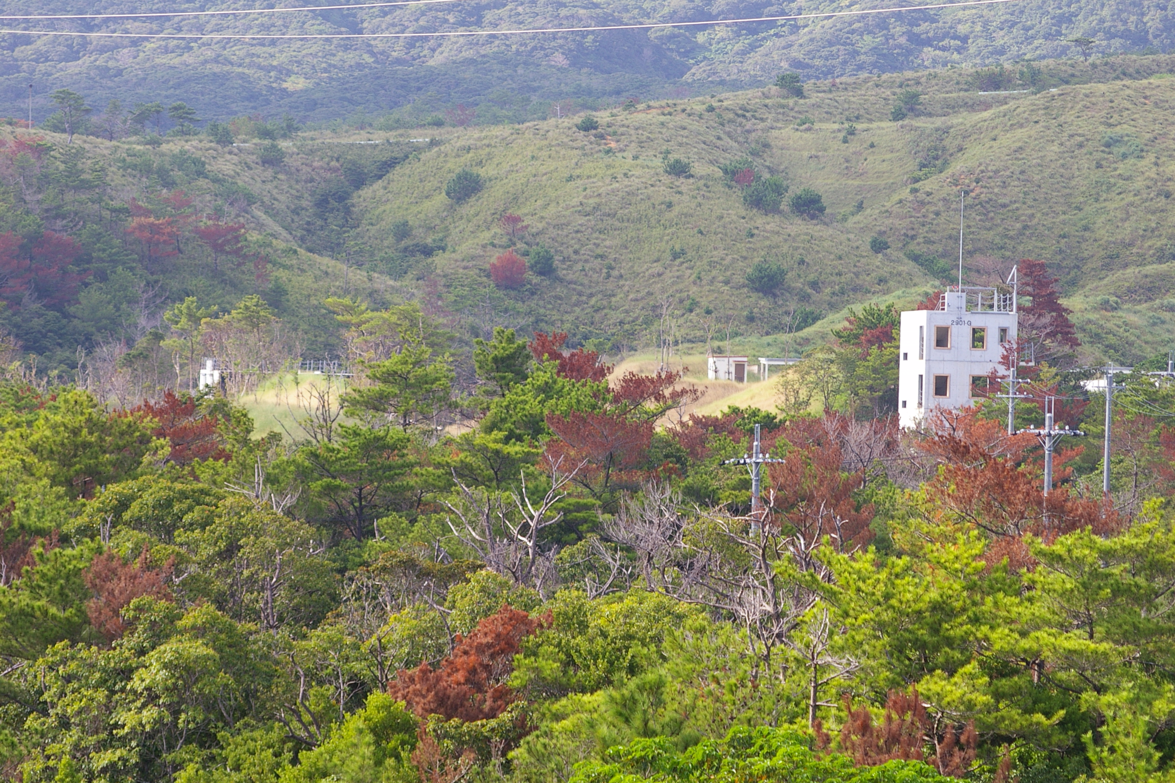 (4)キャンプ・ハンセンは、沖縄県内最大の実弾射撃訓練場。そのために、山火事が絶えない。