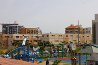 (1)・(2) 米海兵隊・普天間基地。滑走路の延長上には民家が建ち並んでいる。(嘉数高台から撮影)