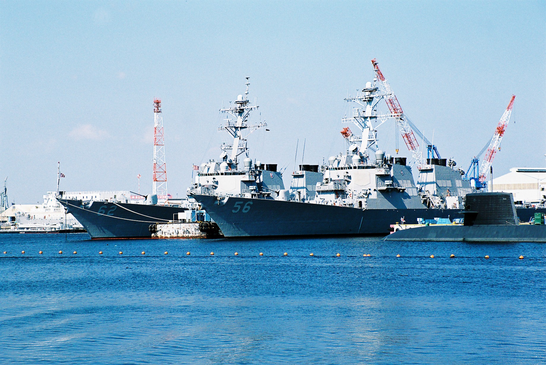 (2)米海軍・横須賀基地。写真はイージス艦カーチスウィルバー(54)と、イージス艦ラッセン(82)。