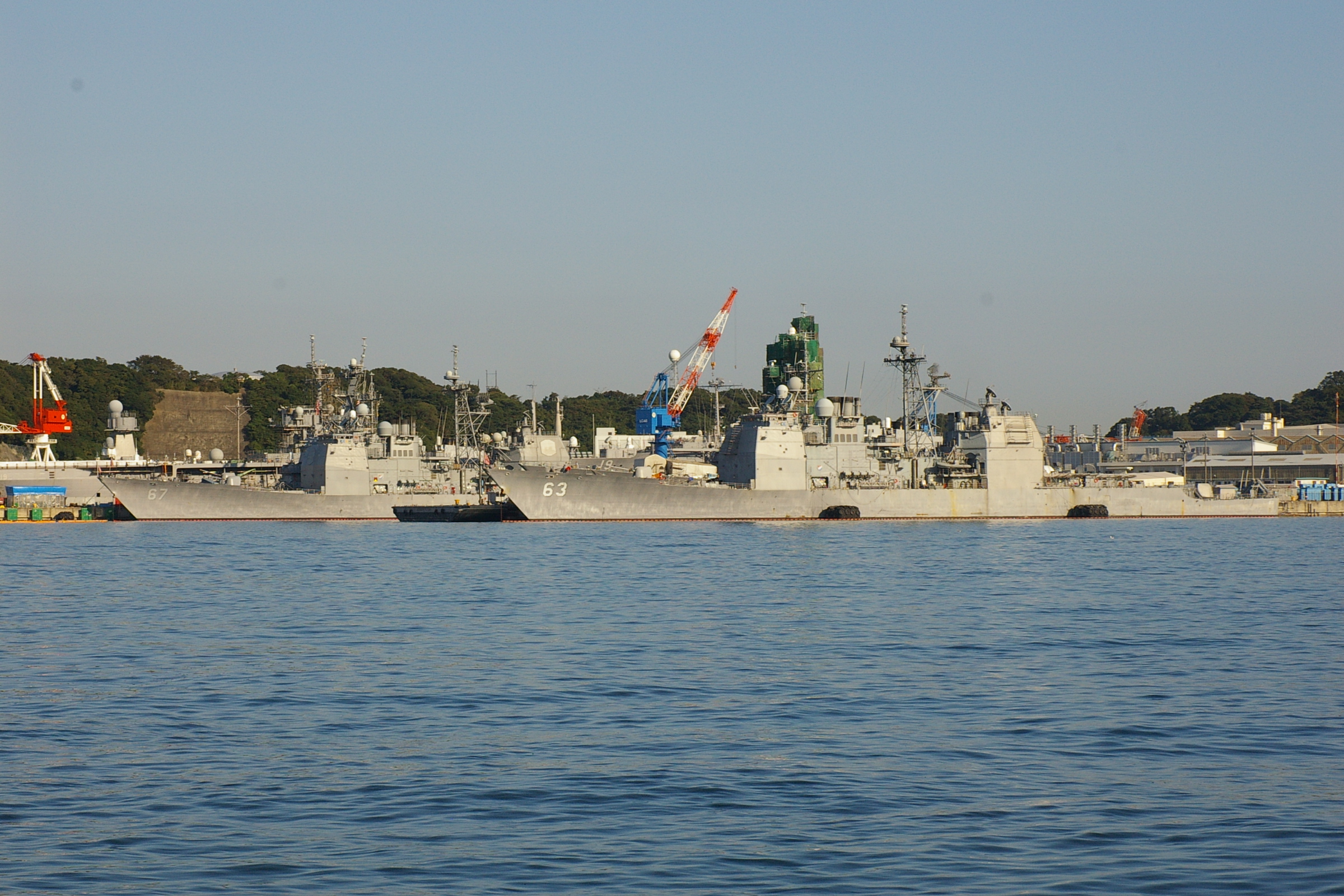(3)米海軍・横須賀基地。写真はイージス艦カウペンス(63)と、イージス艦シャイロー(67)。