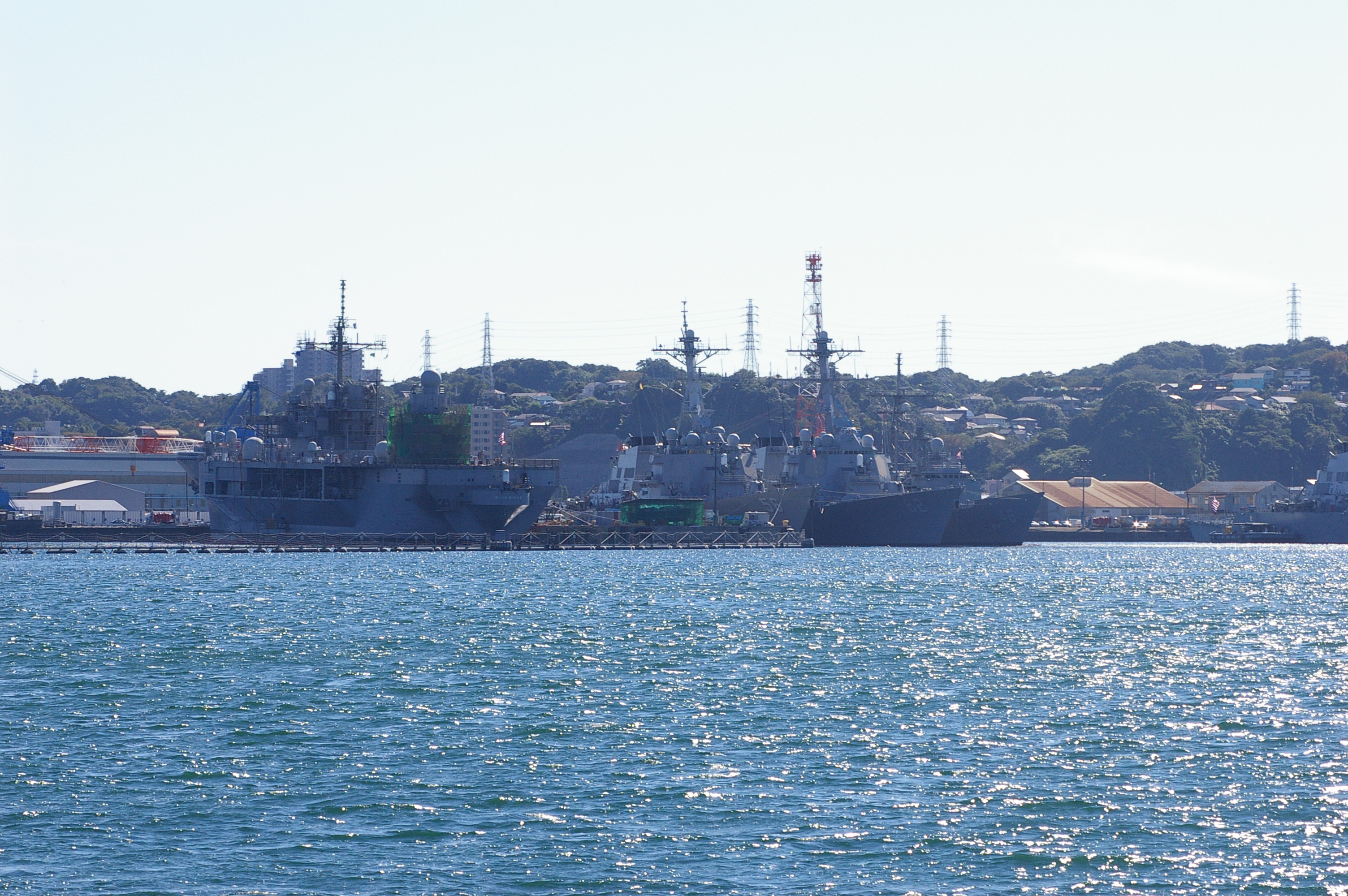 (5)米海軍・横須賀基地。写真左の船は、揚陸指揮艦ブルーリッジ。