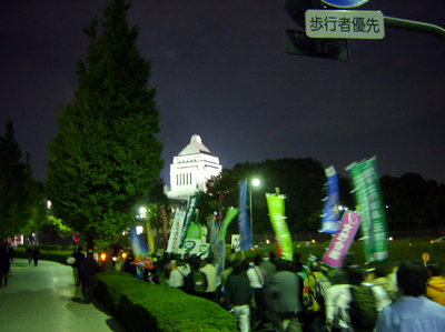●「社民・民主は国会でがんばれ〜 大衆運動もがんばるぞ〜」とエールの交換です。