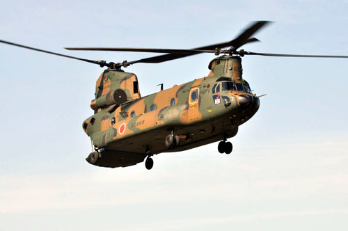 CH−47J輸送ヘリコプター (撮影場所:陸上自衛隊習志野演習場) |