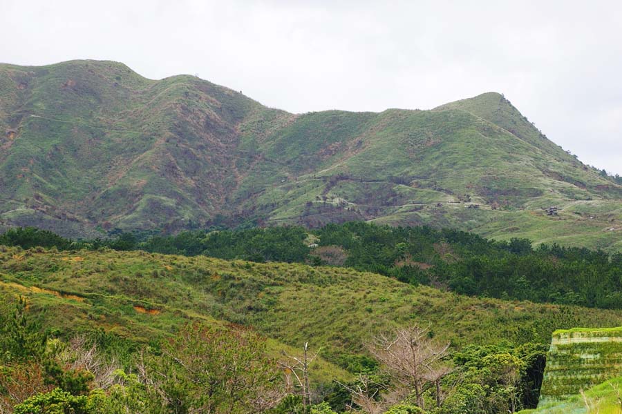 以前は、基地内のこの山に向かって、155ミリ榴弾砲の射撃訓練が行われていた。 |