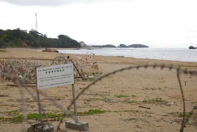 名護市辺野古 日米両国政府が、普天間基地の代替施設を建設しようとしている場所。有刺鉄線の向こう側は、キャンプ・シュワブ。 |