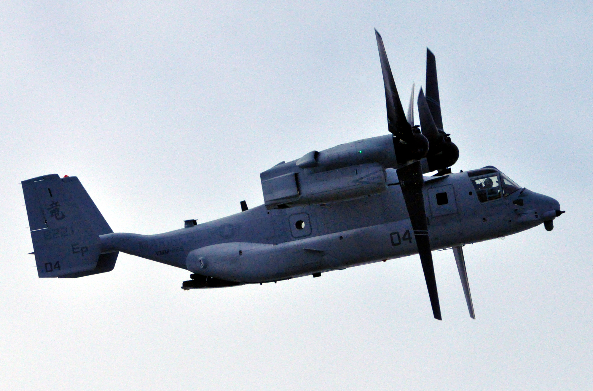 MV-22オスプレイ 海兵隊普天間基地に駐留している 第1海兵航空団・第36海兵航空群・第265海兵中型ティルトローター機中隊の所属機。 (撮影場所普天間基地) |