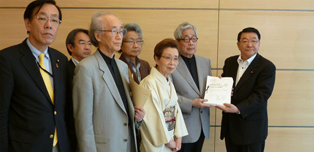 6月15日、「さようなら原発一千万署名市民の会」は、「脱原発を実現し、自然エネルギー中心の社会を求める署名」を首相官邸で藤村修官房長官(右)に手渡しました。署名の呼びかけ人である大江健三郎さん、澤地久枝さん、鎌田慧さん、内橋克人さん(右2人目から)が参加。近藤昭一・稲見哲男衆院議員も同席しました。大江健三郎さんは「700万人以上の署名に賛同している人たちは、原発を再稼働するくらいなら節電という具体的な行動を起こせる人の数です。原発が人類の存在に相容れないという思いのこもった署名の重さを受け止めていただきたい」と述べました。署名は6月19日現在で7,521,863筆となり、衆参両院議長宛の請願署名も提出しました。