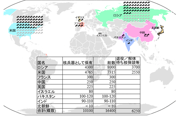 出典:ウェブサイト『StatusofWorldNuclearForces』(FAS)、米国の核問題専門誌『ブリティン・オブ・ジ・アトミック・サイエンティスツ』等