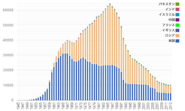 ![]() 米国の保有核兵器 1945─2013年 |