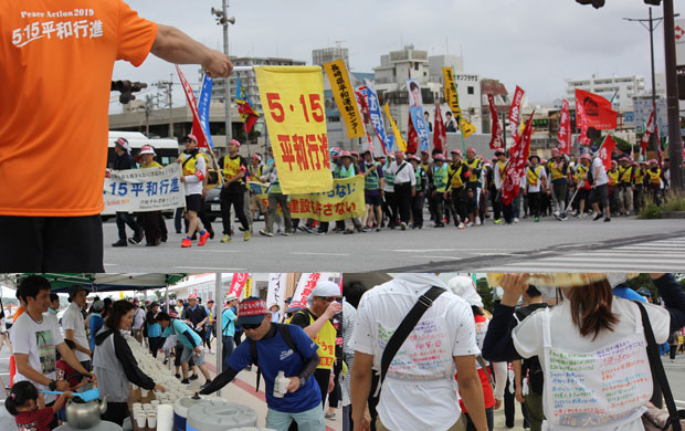 平和行進は3日間累計で3590人が参加、また5月11日には宮古島、15日には石垣島でも行われました。