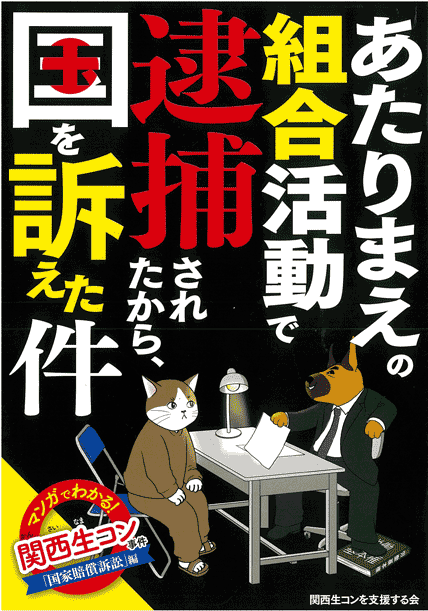 国賠訴訟のねらいを描くパンフレット『あたりまえの組合活動で逮捕されたから、国を訴えた件 ~マンガでわかる関西生コン事件・国家賠償訴訟編~』を作成した。売上げは国賠訴訟の裁判費用に充てられるので、宣伝に使っていただけるようお願いしたい。