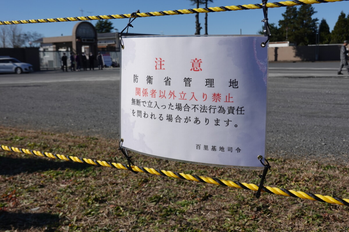 なお、従前は基地正門前で整然と行われてきていたものの、今回の抗議集会は、規制のトラロープが張られ、正門前からは離れた場所で実施せざるを得ませんでした。この問題について、百里基地反対連絡協議会が百里基地司令に対して申し入れを行っています。申入れPDF
