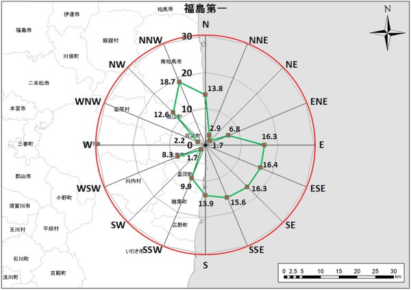 図1 福島第1原発に関する「拡散シミュレーション試算結果」(原子力規制庁)