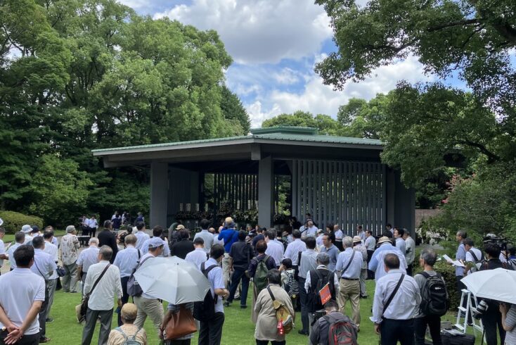 戦後79年を迎えた8月15日、平和フォーラムは千鳥ヶ淵戦没者墓苑において「戦争犠牲者追悼、平和を誓う8.15集会」を約150人の参加のもと、開催しました。 正午に黙とうを行い、平和フォーラムから染裕之・共同代表が「平和への誓いと慰霊のことば」(本記事下部に掲載)を捧げました。引き続いて、立憲民主党の阿部知子・衆議院議員、社会民主党の福島瑞穂・参議院議員、戦争をさせない1000人委員会の内田雅敏・事務局長がそれぞれ追悼のことばを述べました。その後、平和フォーラム構成団体代表および参加者が墓前に献花を行いました。 平和フォーラムは、すべての戦争犠牲者を追悼し、不