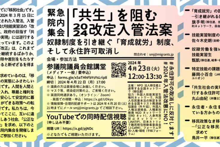 4.23緊急院内集会「『共生』を阻む2024改定入管法案」のご紹介