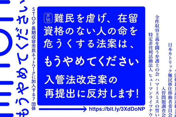 難民を虐げ、在留資格のない人の命を危うくする法案は、もうやめてください 入管法改定案の再提出に反対します!
