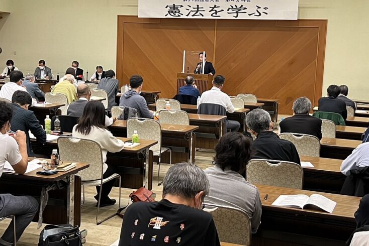 11月12日から14日にかけ、愛媛県・松山市において、「憲法を 変えることより 活かすこと 憲法理念の実現をめざす第59回大会」(第59回護憲大会)を開催し、650人の参加を得た開会総会をはじめ、分科会・ひろばやフィールドワーク、そして閉会総会の3日間の日程のなかで全国各地の参加者とともに改憲発議阻止・軍拡反対のとりくみを強めることをを確認しあいました。 一昨年(滋賀県・大津市)、昨年(宮城県・仙台市)と、コロナ禍のなかで日程短縮や規模縮小を余儀なくされてきました。本年についても従前どおりまでではないものの、感染症対策をしっかり行うこととできる限りの規模や内容の充実の両立を追求し