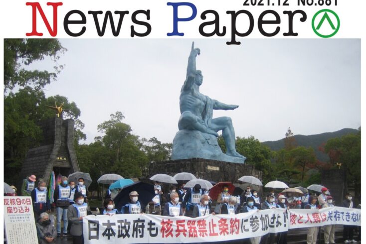 12月号もくじ *ニュースペーパーNews Paper2021.12 *表紙 なぜ岸田政権は米国の先制不使用政策を支持しないのか? 長崎から抗議の声 *インタビューシリーズ 弁護士 砂金直美さんに聞く 旧優生保護法-戦後最大級の人権侵害-の弁護団の一人として *大震災から10年!防衛より防災!共に生きる確実な未来へ 第58回護憲大会を起点に新たな闘いのスタートを *私たちのくらしが壊される 内にも外にも防衛費を増額させようとする圧力 *「防衛省・自衛隊KIDS SITE」について *MOX燃料がやってくる 今こそプルサーマル中止の