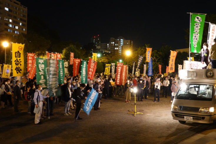 米海軍が神奈川県・横須賀基地に空母を配備したのが1973年。47年が経過した2020年10月1日、ベェルニー公園で「10.1原子力空母ロナルド・レーガン横須賀配備抗議!母港撤回を求める神奈川集会」が開催されました。主催したのは神奈川平和運動センター、三浦半島地区労センターで、平和フォーラム、全国基地問題ネットワーク、平和センター関東ブロック連絡会議が共催しました。 コロナ禍を鑑みて規模を縮小しての集会となりましたが、集会での発言では、政府がめざす敵基地攻撃能力の保有に対する批判をはじめ、防衛費の拡大、日米軍事一体化の現状などの報告があり、政府の方針であった専守防衛すらかなぐり捨てて、