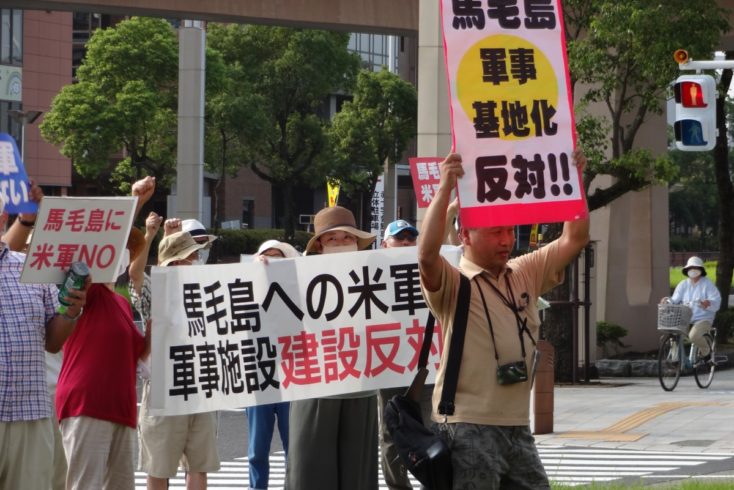 防衛省は8月7日、鹿児島県西之表市馬毛島に計画する自衛隊基地の概要を公表しました。2本の滑走路を整備し、燃料施設、火薬庫のほか、海岸には桟橋、係留、揚陸施設を建設するとしています。 7日に鹿児島県庁と西之表市役所に訪れた山本朋広防衛副大臣は、「島嶼防衛と日米同盟のために基地は必要」と述べています。新基地の運用は、米空母艦載機の離発着訓練(FCLP)のほか、F35B戦闘機の模擬艦艇離発着訓練、陸自オスプレイの飛行訓練なども想定されています。一方で、大規模災害時の各種支援物資の集積・展開地としての利用を語っていますが、額面通りの受け取りはできません。 九州での自衛隊基地機能の強化と南西