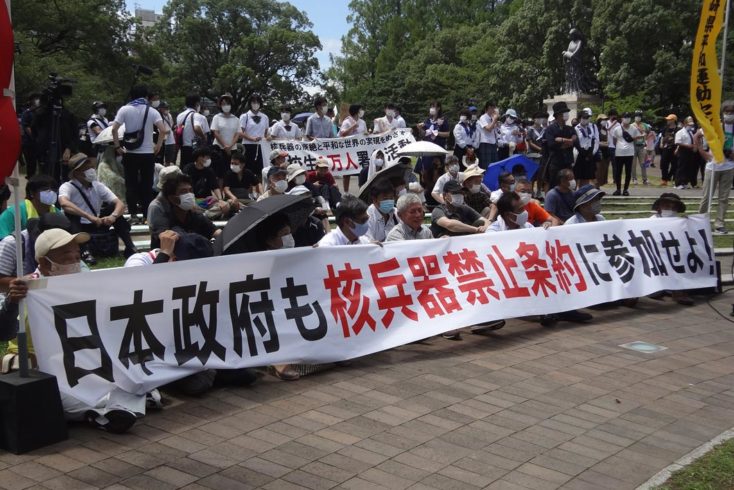 平和フォーラムは戦後75年となる8月15日、千鳥ヶ淵戦没者墓苑において、「戦争犠牲者追悼、平和を誓う8.15集会」を開催し、フォーラム参加団体代表者や市民など約120人が参加しました。新型コロナウィルス感染症問題が今なお終息をみないことから、例年より規模を縮小し、フィジカル・ディスタンス確保などの対策を講じながらの集会となりました。 正午から黙とうを参加者全員で行ったのち、平和フォーラムから藤本泰成・共同代表がすべての戦争犠牲者に向けて誓いの言葉を読み上げました。引き続いて、立憲民主党を代表し近藤昭一・衆議院議員、社会民主党党首の福島瑞穂・参議院議員、立憲フォーラム副代表の阿部知子・