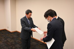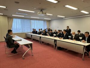 また、12月12日には、九州ブロック労働組合連絡会議が九州各県の国会議員とともに、オスプレイの墜落に関わって、地元の声をもとに運用中止等を求めた要請書を提出しました。防衛省内でマスコミにも一部公開し、防衛省側は松本政務官が対応しました。