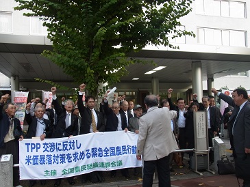 TPP交渉に反対し米価暴落対策を求め農民団体が行動